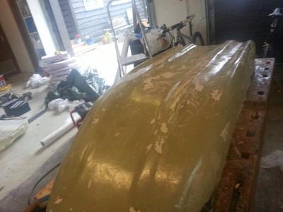 Har kjøpt meg en gammel fot glassfiber båt som jeg har pusset å tettet noen hull i. Den er også blitt falmet i fargen med årene. Noen som har noe tips om hva jeg skal bruke for å få tilbake noe farge og holde båten tett. Båten skal ligge på henger når den ikke er på vannet. Tips tas i mot med stor takk. Jotun Sparkel brukes til å reparere skader i skroget.
